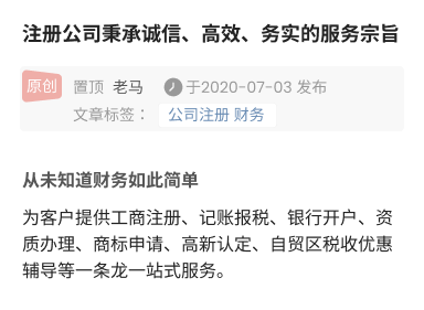 “威尼克斯人”秉承诚信、高效、务实的服务宗旨,为客户提供工商注册、记账报税、银行开户、资质办理、商标申请、高新认定、自贸区税收优惠辅导等一条龙一站式服务。